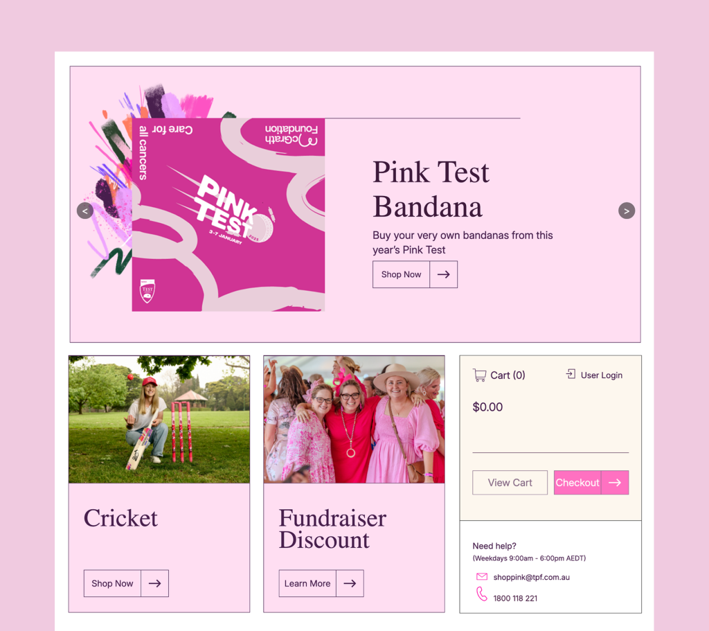 We manage the Foundation’s entire merchandise ecosystem. From creative design, product development and sourcing to eCommerce management and fulfilment, delivering a seamless, end-to-end solution that powers the Shop Pink experience.