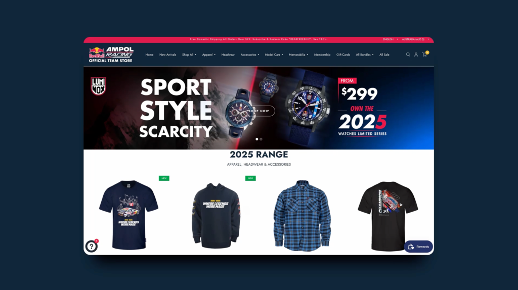 From concept and creative through to production, eCommerce, and fulfilment, TPF manages the team’s entire merchandise program, delivering premium apparel, accessories, and fan gear that capture the energy, precision, and performance of the Red Bull Ampol Racing brand.